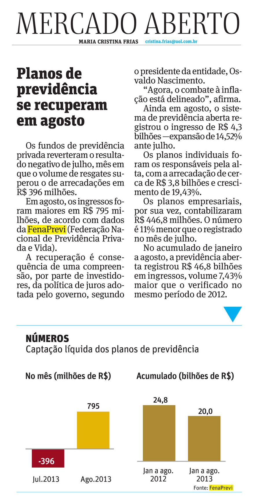 A previdência privada aberta se converteu nos últimos anos num dos principais instrumentos de poupança de longo prazo dos brasileiros. A Conteúdo faz parte desta história de sucesso. Desde 2003, a agência responde pela assessoria de imprensa da Fenaprevi (Federação Nacional de Previdência Privada e Vida), entidade que representa o setor no país.