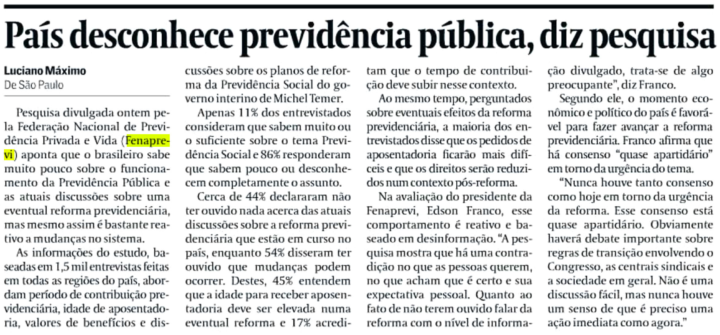 Toda esta campanha de esclarecimento público, que resultou milhares de matérias, notas e artigos sobre o assunto, contribuiu para consolidar a ideia de que o brasileiro precisa repensar sua estratégia financeira para o futuro e que a previdência complementar aberta é uma alternativa segura e atraente para os consumidores.