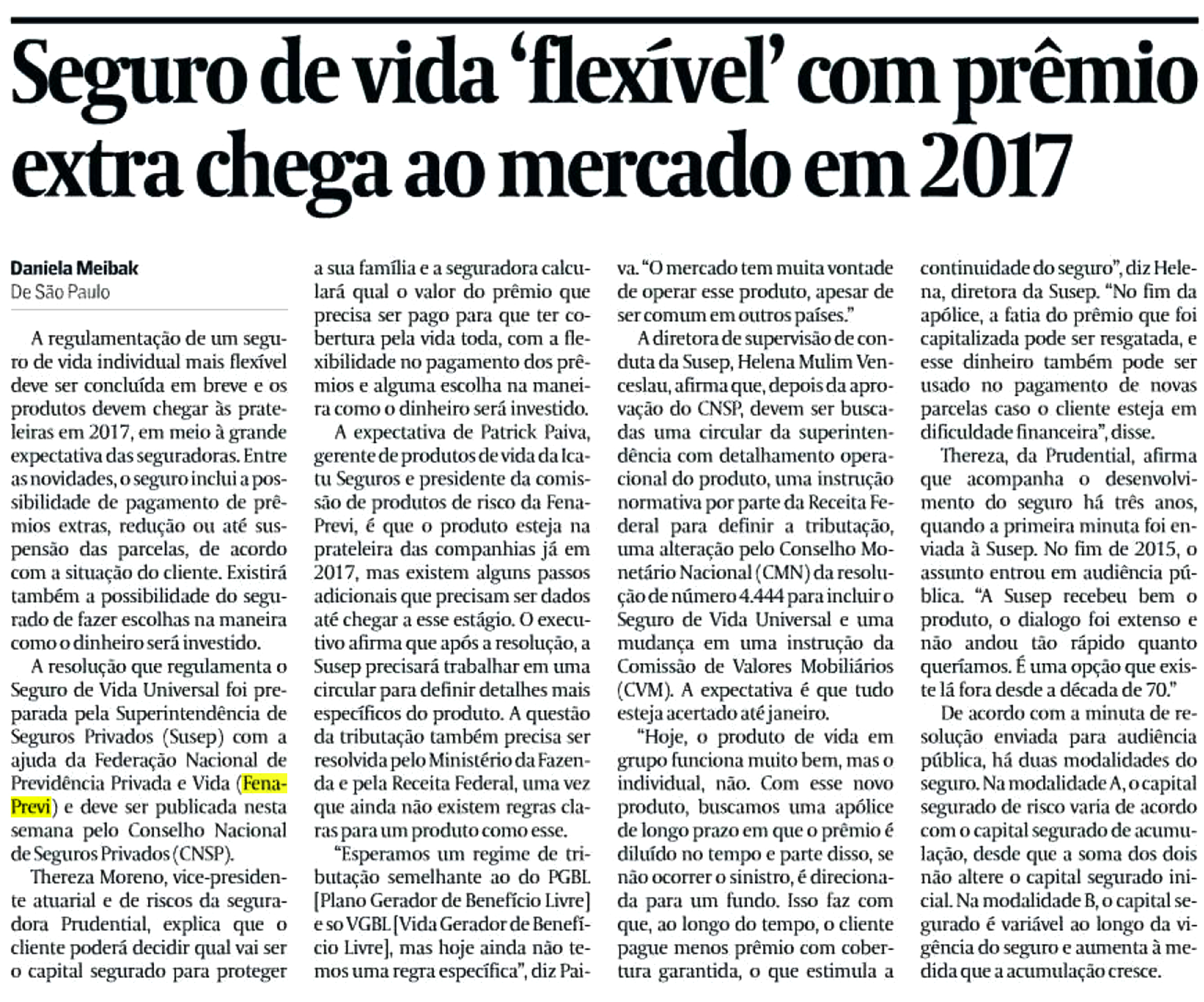 Este ano, completamos 13 anos de atendimento à entidade, que reúne 68 seguradoras e entidades abertas de previdência complementar no país. Neste período fizemos a representação de 4 diferentes presidências, ocupadas por nomes de grande relevo no setor financeiro: Osvaldo Nascimento (Itaú), Antonio Cassio dos Santos (ex Mapfre, Zurich e atual presidente da Generali), Marco Antonio Rossi (Bradesco Vida e Previdência) e Edson Franco (Zurich Brasil Seguros). Comunicação de resultados, esta é a nossa marca.